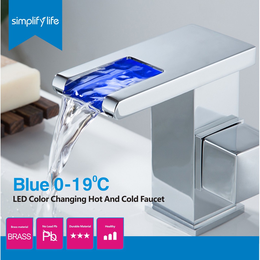 Led Rgb Bathroom Sink Basin Mixer Tap Waterfall Square Bath Faucet