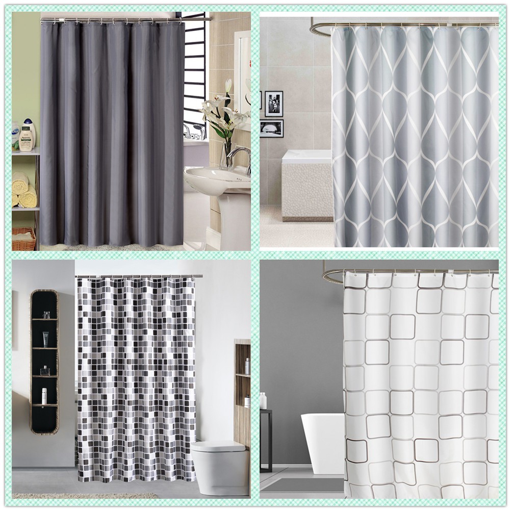 Ready Stock Thick Polyester Plain Shower Curtain Bathroom